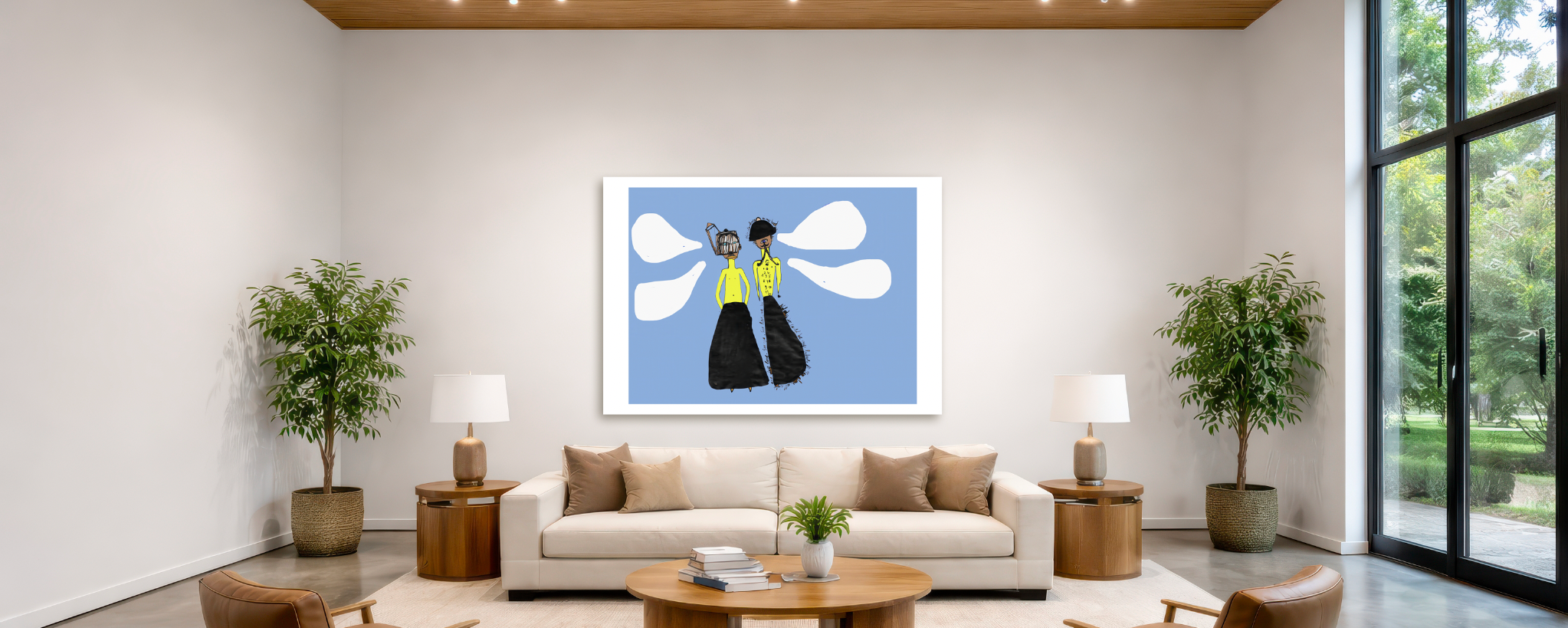 Avoid direct sunlight and high humidity. Handle the print by its edges to prevent fingerprints. For framing, archival-grade materials are recommended to maintain longevity.